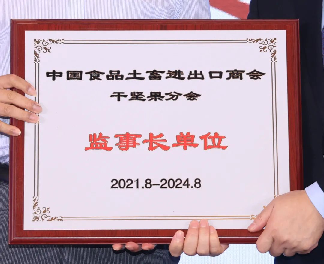 會議期間,含羞草榮獲中國食品土畜進出口商會干堅果分會監事長單位榮譽。